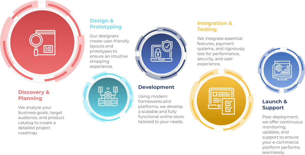 Leverage leading platforms like Shopify, Magento, WooCommerce, and BigCommerce to set up powerful and scalable e-commerce solutions.